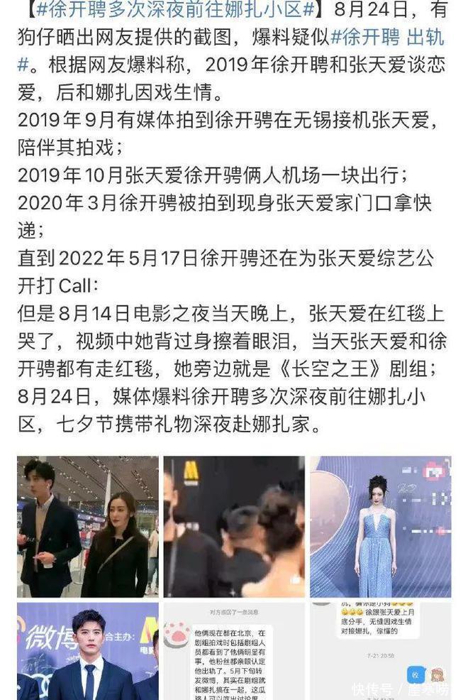 比如张天爱和徐开聘驰名的“爱宝”事件,其时渣男的出轨对象如故娜扎来着。