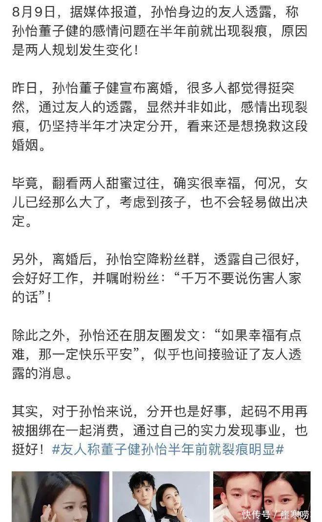 孙怡跟董子健的离亲事件寰球也皆知谈,他俩蓝本一直是许多东谈主眼里很般配很甘好意思的一双,转眼官宣仳离如故让吃瓜网友们很猝不足防。